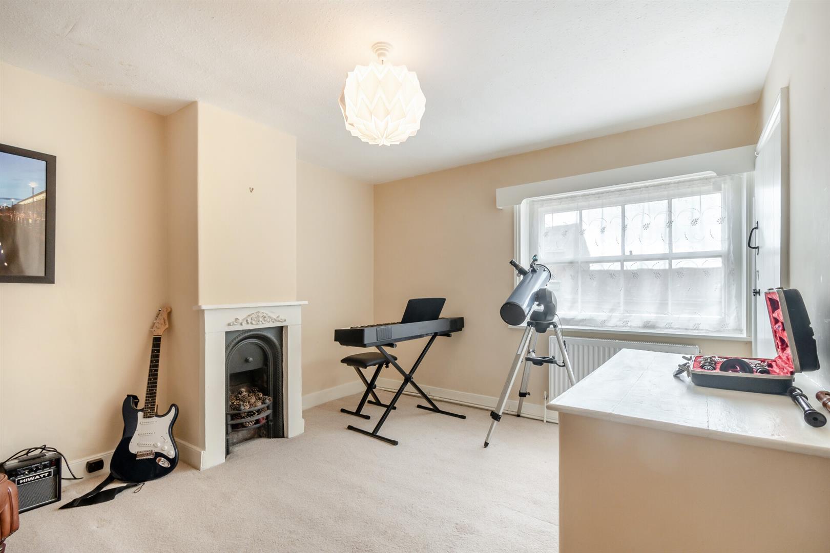 Upstairs, the generous principal suite offers peaceful garden views, while the beautifully appointed family bathroom features a freestanding roll-top bath and period-style fittings.